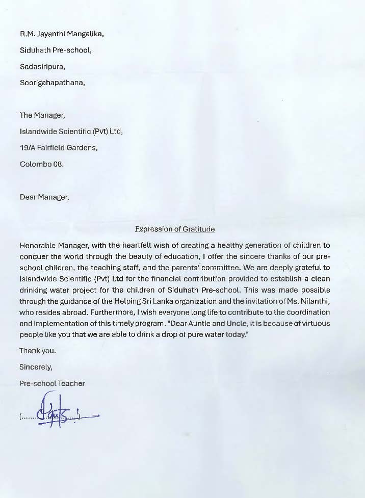 As one of the responsible analytical instrument suppliers who primarily acts as a distributor of analytical instruments and scientific laboratory equipment, Islandwide Scientific (Pvt) Ltd understands the concerns of the communities in which they operate. In this regard, several CSR initiatives have been launched to offer a helping hand to those in need.